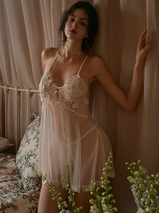 Mikayla Sexy Lace Babydoll Lingerie (White)