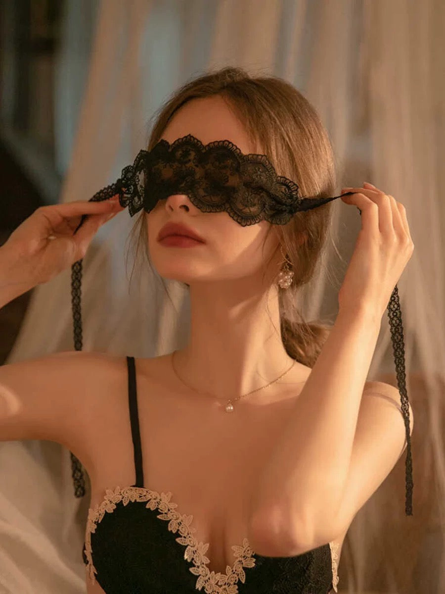 • Crafted from soft, breathable lace, this eye mask offers a teasing aesthetic that pairs perfectly with matching lingerie sets for coordinated elegance.